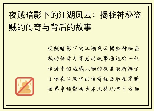 文章摘要:本文将深入探讨《北风幼龙缰绳与自然元素交织的奇幻之旅》,通过四个不同的方面详细阐述这段奇幻旅程揭示的古老传说中的神秘力量。文章首先介绍了北风幼龙缰绳的起源与神秘性质,然后从自然元素的交织与奇幻世界的构建入手,分析这些元素如何与北风幼龙的力量相互作用。接着,文章深入探讨了这段奇幻之旅中的英雄...